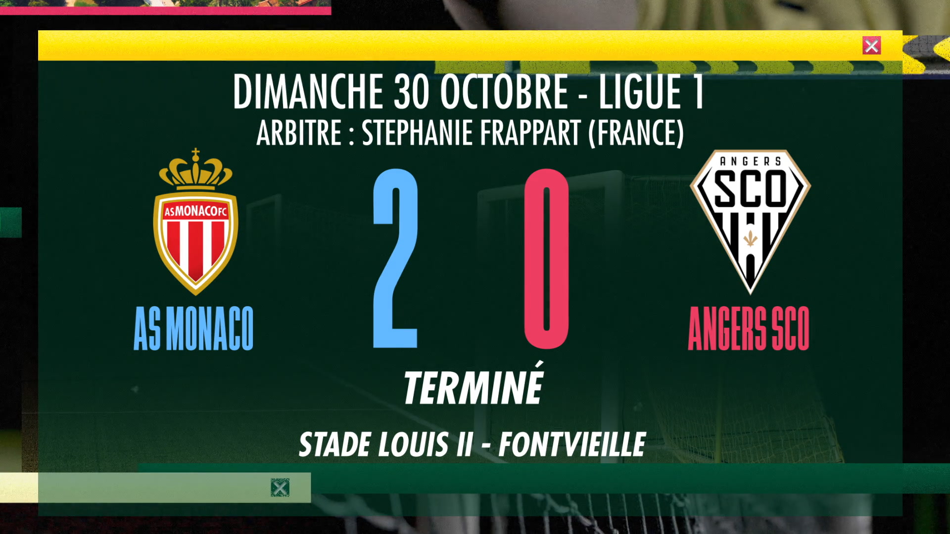 Monaco won 12 direct matchesAngers won 4 matches3 matches ended in a drawOn average in direct matches both. Angers 3 - 0. Ligue 1 Uber Eats - Season 20212022 - Week 35 STADE LOUIS-II - Sunday 1 May 2022Goals.